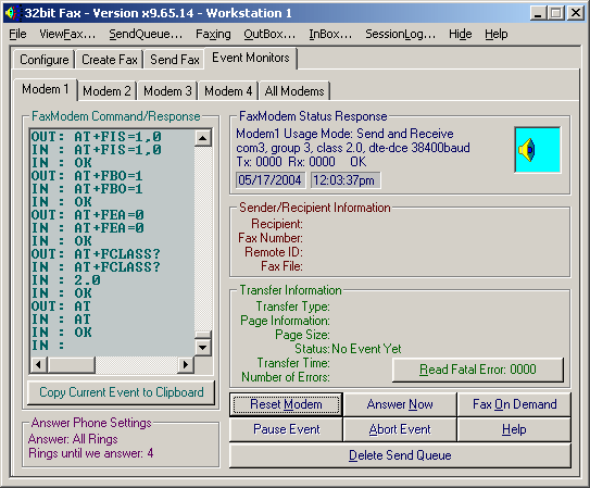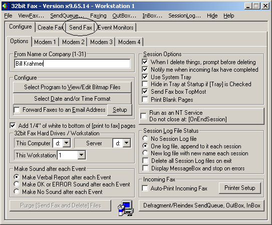 When you start the program, go into [Configure], [Modem 1]. You will need to decide