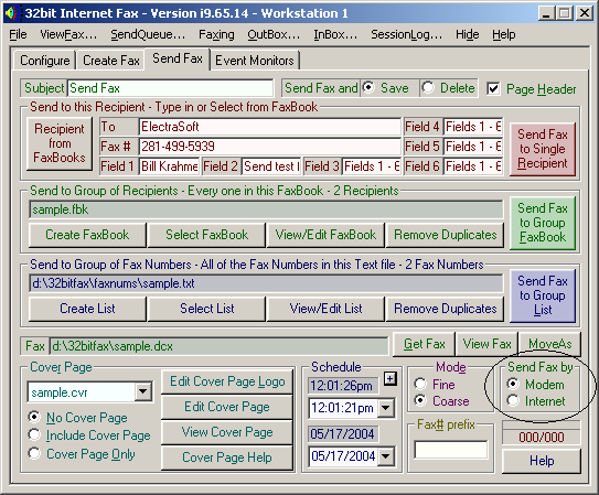 how you want to send faxes. You can send faxes by Internet, data/fax modem, or both.